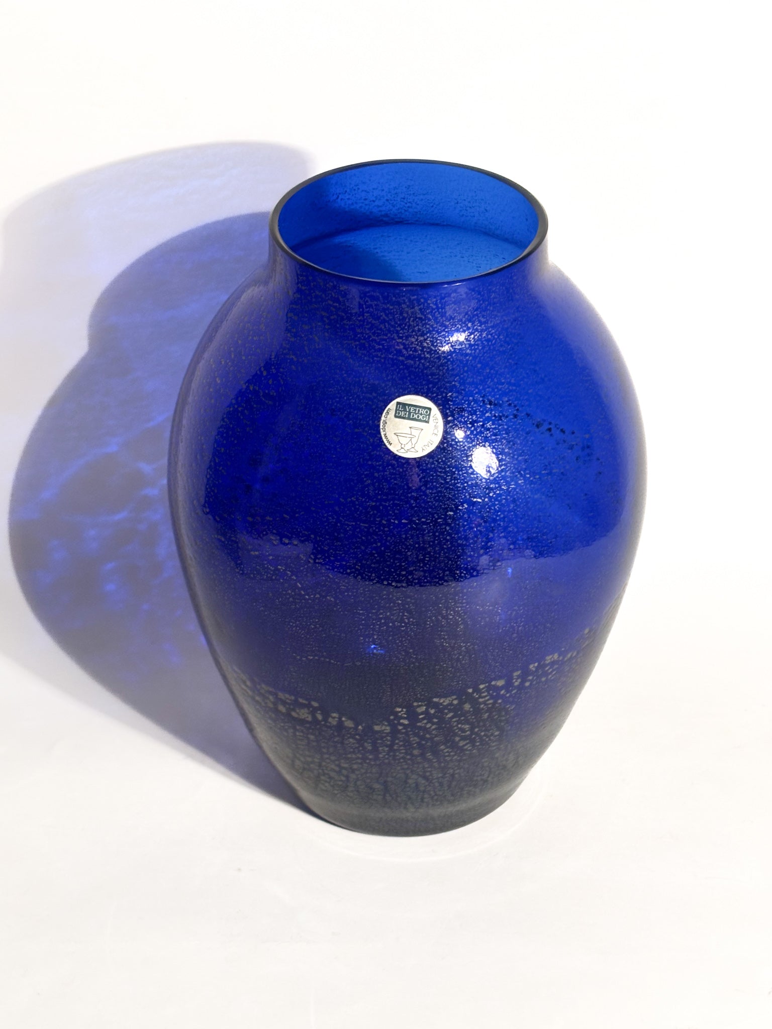 Vaso in Vetro di Murano Blu e Inserti Argentati il Vetro dei Dogi Anni 80